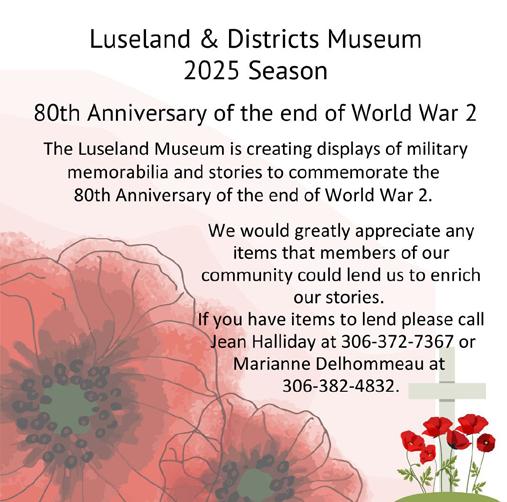 • Ducks Unlimited Supper at the PCC. Tickets are available from Jim Wilson 306-834-5156 or Richard Anderson 306-8347676. Games, Live Auction and Silent Auction.