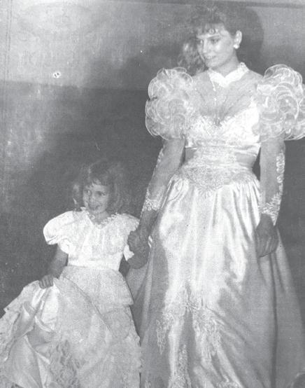 BRIDAL FASHIONS FROM 1989! Ashley Rye, front, smiles as she takes the stage at Kindersley’s first Bridal Fair and Fashion Show at the Kindersley Inn, accompanied by Tara Dietz in a blush pink gown. More than 180 women attended the event, which was hosted by local businesses. PHOTO KINDERSLEY CLARION, OCT. 25, 1989
