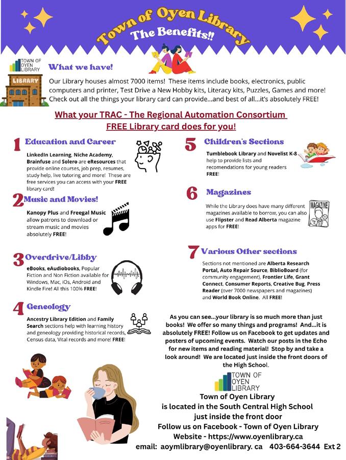 All minutes and financials will be accessible to all members in the google drive, and Newsworthy Notes will be shared to Facebook and The Oyen Echo each month.