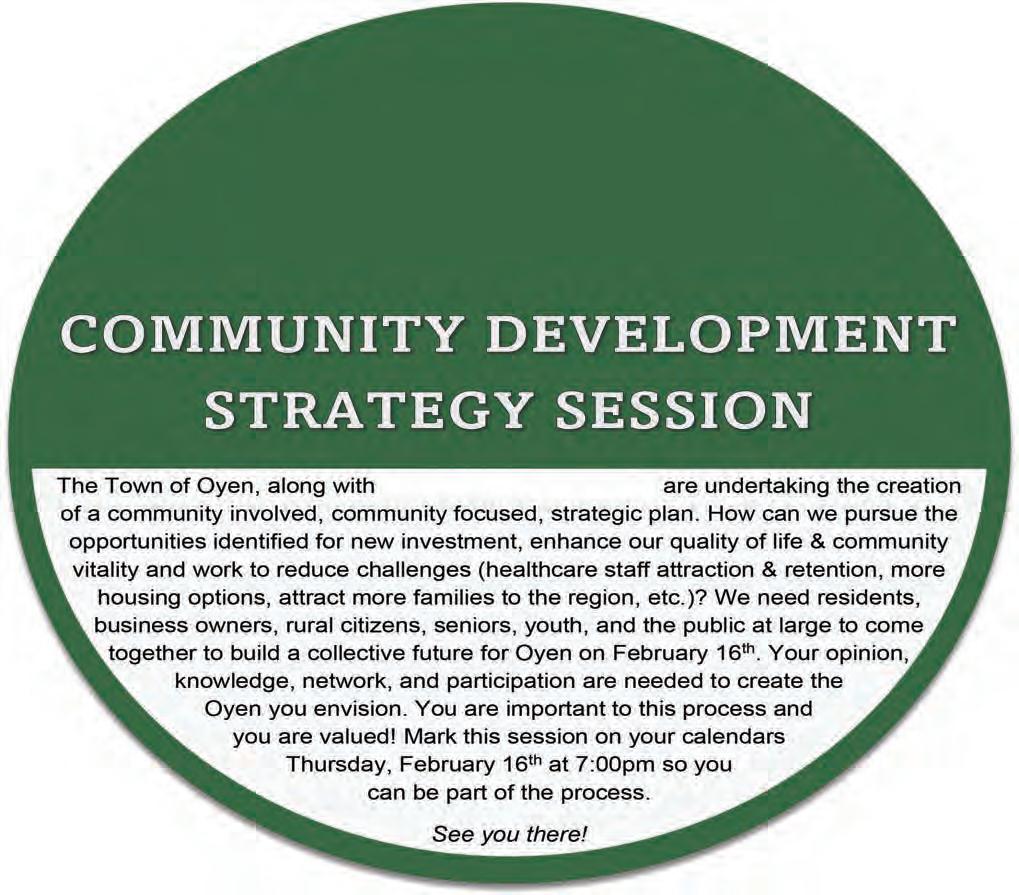 • Town of Oyen Community Development Strategy Session 7:00 PM at the FCSS Community Centre.