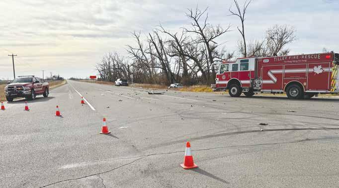 TILLEY — On Oct. 31, 2025, at 10 a.m., emergency services personnel, which included Brooks RCMP, County of Newell Peace Officers, Emergency Medical Services, and Fire Departments from Tilley and Rolling Hills, responded to 911 calls of a two vehicle collision at the intersection of Highway 875 and Highway 535 in the County of Newell.