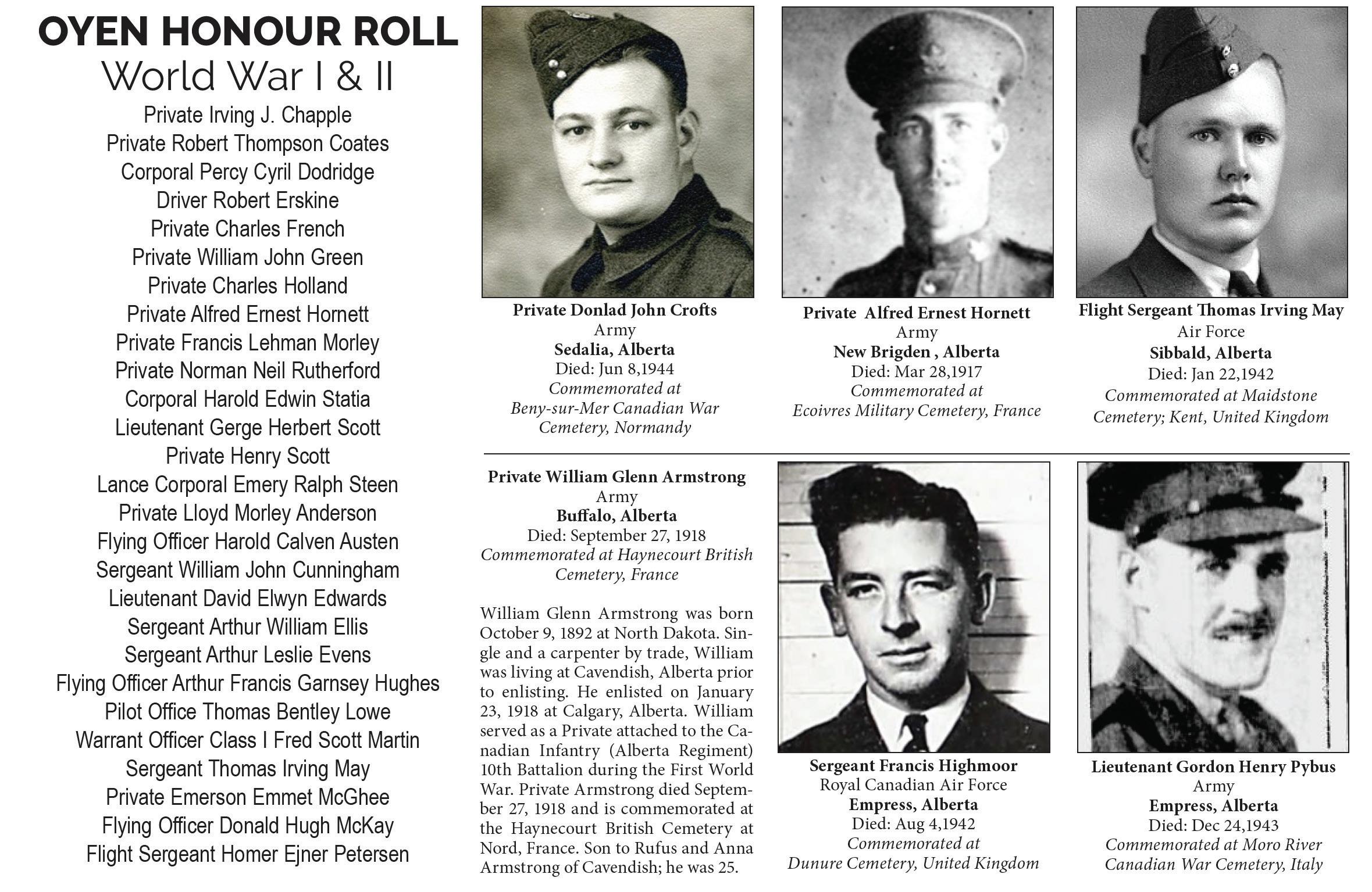• Remembrance Day Service Acadia #208 at the Oyen Legion Hall 10:30 AM Sharp. Potluck lunch to follow.