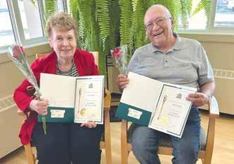 September went by fast, and now October has arrived—it seemed summer went so quickly! Wednesday started with crossword games and some walking. In the af ternoon, there were shuf fleboard games. Thurs day morning began with exercises, followed by one-on-one decorating for the Oktoberfest party in the afternoon. Bratwurst sausage, homemade Ger man spaetzle, sauerkraut, pork schnitzel, chicken schnitzel, and pretzels were served, along with beer, coffee, or tea. Ger man music was played
