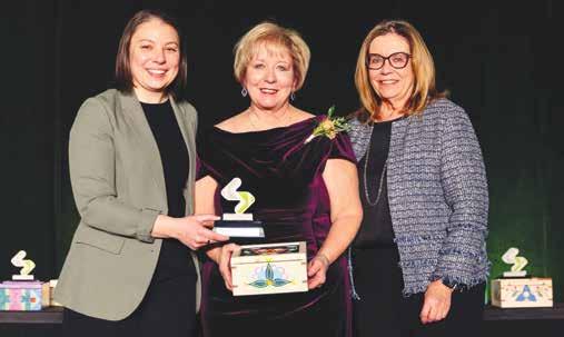 For her long and varied contributions in skating, Allyson Senecal (C) of Rosetown receives a Sask Sport volunteer recognition award during the Sask Sports awards banquet in Regina on Jan. 29. Amy Prokop (L), Sask Sport board chair, makes the presentation, along with Alanna Ross (R), minister of Parks, Culture and Sport.