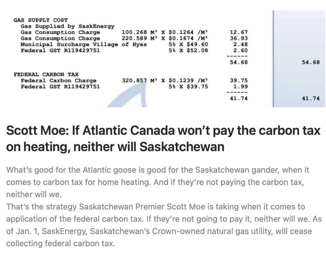 supporting the government refusing to collect carbon tax on natural gas Jan. 1 unless the feds shape up