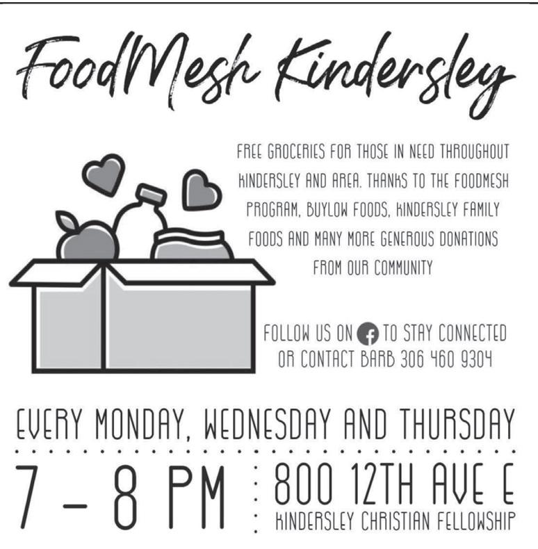 * Interested in a support group for weight management? TOPS meetings; every Monday at 6:00 PM in the Kindersley Senior Centre OR contact Jill at 306-463-4210.