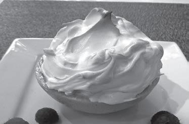 6. Set an ice-cream round in the center of each fruit-filled bowl. Immediately spoon the glossy, stiff meringue on top and seal edges around the cut grapefruit rim with a butter knife. Bake in the middle of the oven for 5 minutes, or until meringue is golden.