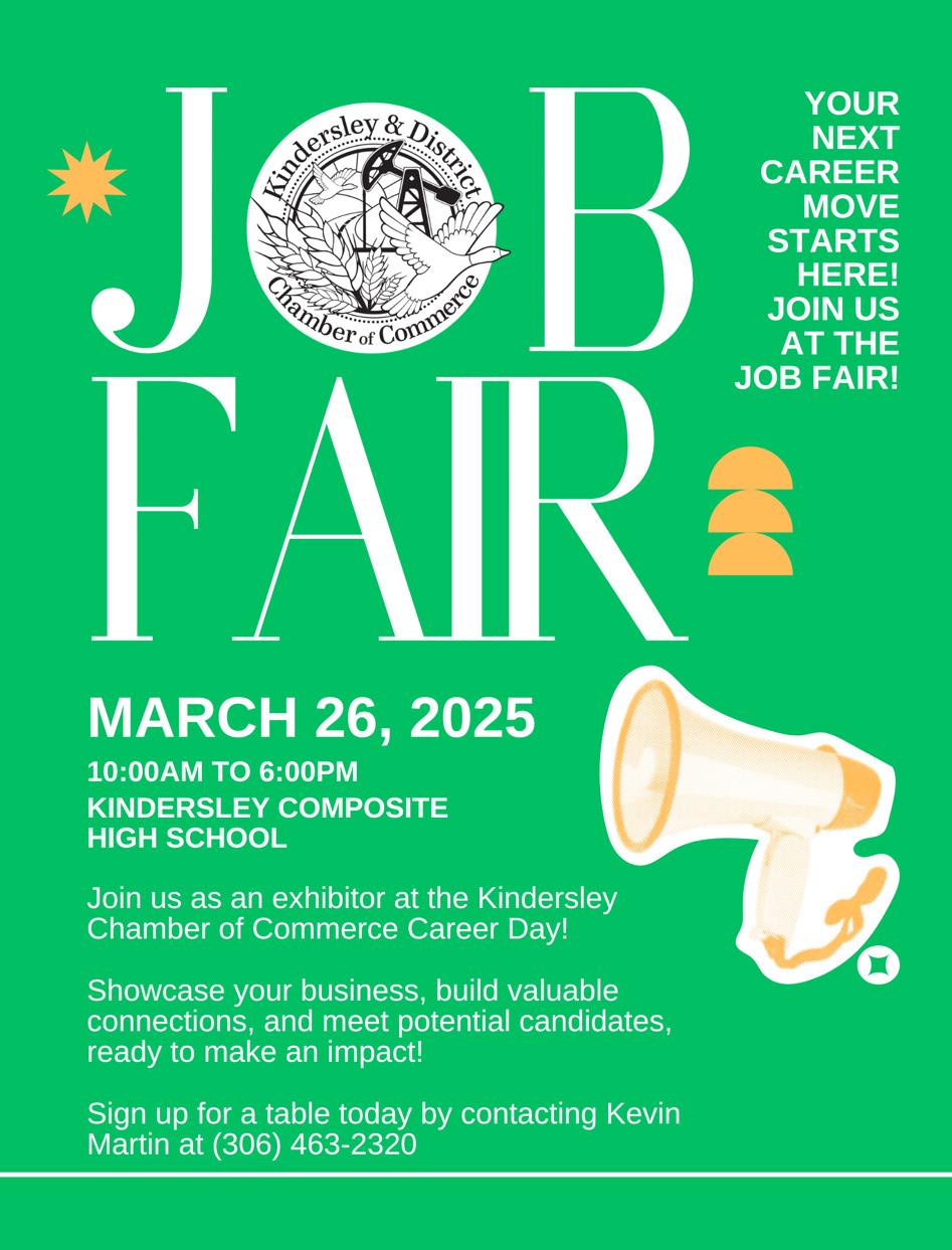 • Job Fair / Career Expo at the Prairieland Community Centre from 1:00-7:00 PM. Bring your resumes! If interested in having a table, contact the Town of Kerrobert Office. $40 /table.