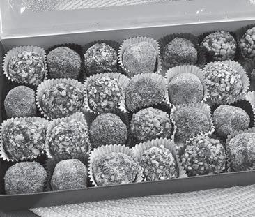 Roll the ball lightly in the topping, remove, then roll it in your hands slightly. Drop it back in the bowl until covered, then set on a parchment-lined pan. Chill the truffles until firm.