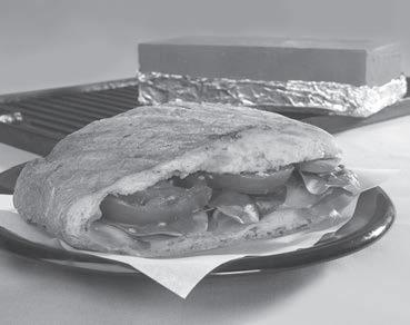 To create the same taste and effect, we make our panini on the stove with a basic grill pan and press them with a brick covered in tinfoil. If you don’t have a brick, set another heavy skillet on top of the sandwich with soup cans to weight it