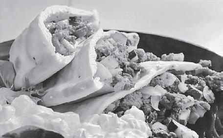 Preheat a large skillet on mediumhigh heat. Heat the olive oil and brown the onion. Add the ground beef and garlic, curry powder, salt, pepper, diced tomato and zucchini, and stir to combine. Add 1/4 cup water, cover and simmer 3 minutes.
