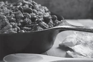 Heat skillet to medium-high. Place hamburger and onion in the skillet, stirring occasionally. While the hamburger cooks, open the beans and tomato sauce and rinse the beans. Set aside. When the meat is nearly done, drain the excess fat from the skillet. Add the chili powder, cumin, garlic, tomato sauce and beans. Stir to combine. Add salt and pepper to taste.