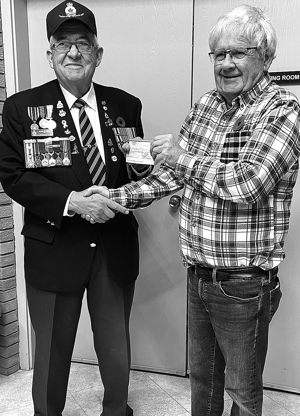 On Wednesday, November 3rd, the Kindersley Royal Canadian Legion Branch 57 made a presentation at the Town of Kindersley. Legion member Ernie Krepps presented a cheque for $1500.00 to Mayor of Kindersley, Rod Perkins. The funds will go towards Kindersley’s handibus.