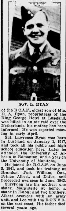 Royal Canadian Air Force Regina, Saskatchewan Kindersley, Saskatchewan Died: Mar 28,1945
