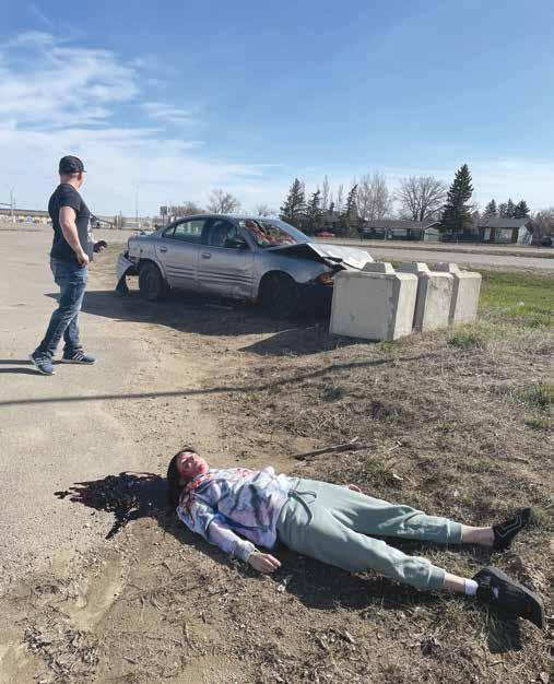 Kindersley Composite high school students were bussed to the Elks Hall where a mock accident was staged. The Town of Kindersley, EMS, RCMP, the Kindersley Fire Department and a few high school students joined together to stage a realistic accident for all the students.