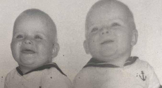 Rita Rossoll born in 1952. Jerry and Larry Jensen born May 4, 1955. Deborah and Catherine Adams born October 27, 1955. Dale and Dawn Olson born January 1, 1956. Claye and Corinne Seefried born March 11, 1957. Donald and Ronald McQueen born March 14, 1957. Keith and Kenneth Bancroft born September 23, 1959. Darren and Warren Mushinski born August 26, 1965. Richard and Rodney May born December 13, 1966.