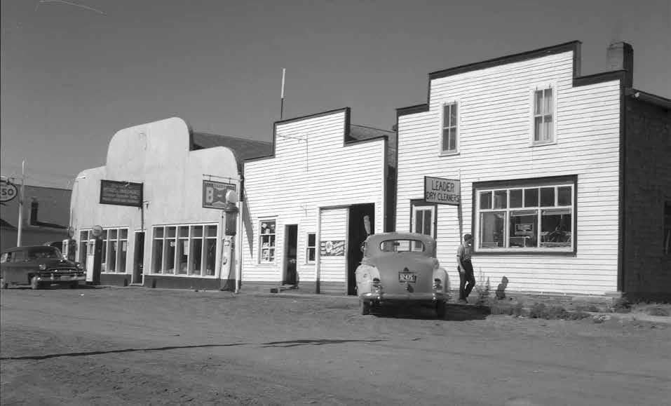 This is a street view of Leader, Saskatchewan in 1954, complete with a couple of vintage automobiles. PHOTO: ERIC STORM, HISTORIC SASKATCHEWAN