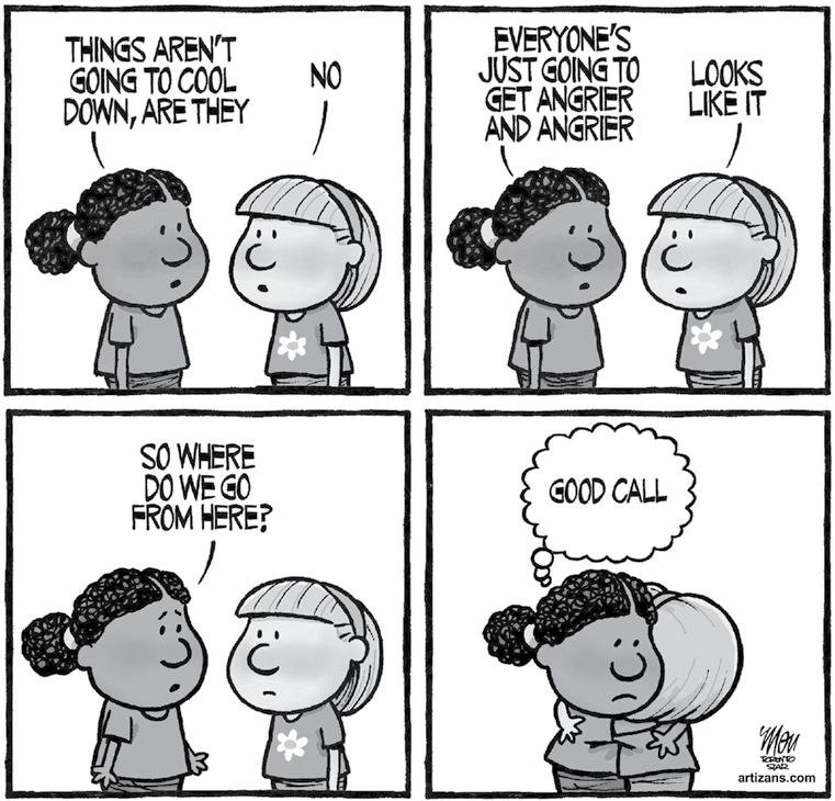 When I got home, I watched Russell Moore’s interview with the man who coined the term “culture wars,” James Davison Hunter, a professor of religion and social theory. A while ago, he wrote “Before the Shooting Starts,” a book that warns “that all shooting wars are preceded by culture wars.” He also said: “We need to imagine how to extract ourselves from this tug of war that knows no end.” He affirmed my instinct to turn off the computer and go stand under the stars, to become a speck under the endless prairie sky. All we have to do to end this tug-of-war is: drop the rope.