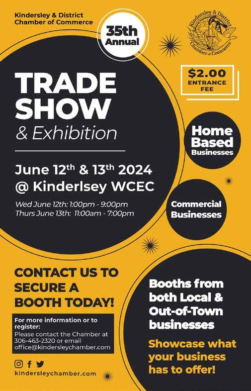 • Kindersley Wildlife Federation Annual Banquet at the Kindersley Elks Hall. $60 adult; $30 children. Doors open at 5 PM. Contact Brooke Kachmarski 306-460-5935 to get your tickets.