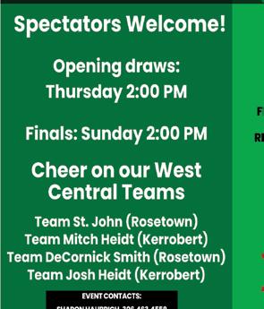 • Kindersley Curling Club is hosting the CURLSASK Mixed Provincial Championships at the WCEC. 12 teams from across the province will compete for their chance to represent Saskatchewan in the coveted green jacket! Opening Draw: Thursday 2 PM. Finals Sunday 2 PM.
