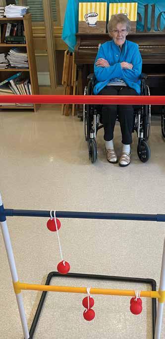 It was just a regular Wednesday afternoon for Mandy Lavallee at Eatonia Oasis Living when I dropped in for a visit on May 1. She had lined up a dozen or so senior ladies who were ready to play a game. They all tried their best to throw the balls attached to string, with the goal of wrapping the projectiles around the frame set in front of them.