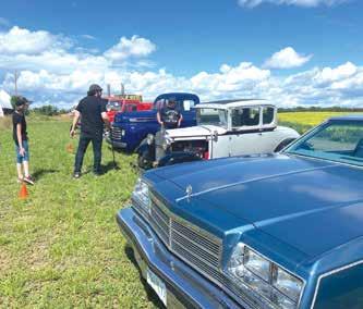 Hostesses Reece and her mom wore matching red coveralls and 1950s hairstyles for the occasion, while Kent was in charge of barbecuing hot dogs. Over a dozen antique vehicles from the area were parked on their property, along with vendors from Medicine Hat,