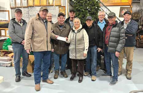 GIVING BACK: The Kindersley Antique Threshing Club is dedicated to giving back to the community with the proceeds from the crop they harvested in 2025. Lionel Story, along with members of the Antique Threshing Club, presented a cheque for $1,999.31 to Viv Kalmer and other representatives of Kindersley & District Health & Wellness Foundation. The funds will be used for renovations at Heritage Manor. (L-R) Dennis Woodrow, Lionel Story, Garth Weinhandl, Rick McDougall, Gord Dunn, Viv Kalmer, Duffy Hamm, Hugh McLean, Larry Benjaminson, Blair Dies. PHOTO BY JOAN JANZEN