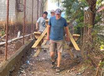 Left: Lars Jensen helps carry one of the thousands of picnic tables local boys have made at PAW, a non-profit charity in Guatemala.