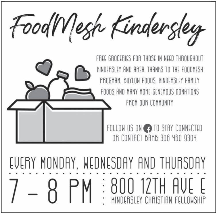 * Interested in a support group for weight management? TOPS meetings; every Monday at 6:00 PM in the Kindersley Senior Centre OR contact Jill at 306463-4210.