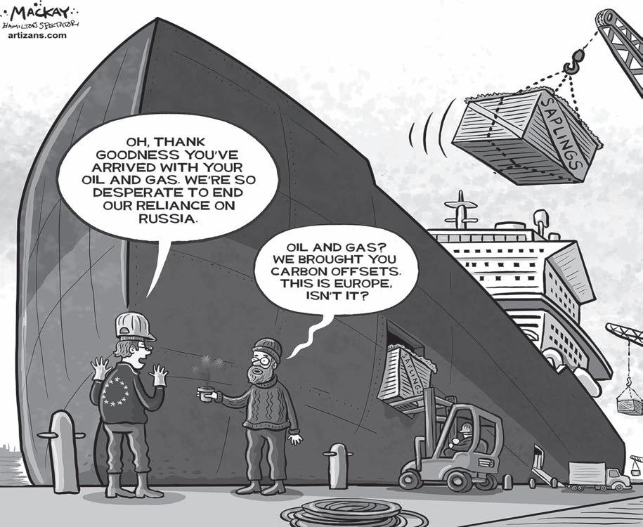 Green energy is offered as the solution for everything, even the war in Ukraine, which is dubbed as carbon heavy activity. The government’s way of thinking seems to be - Canada needs to be an example, for other countries to follow. But they’re not following.