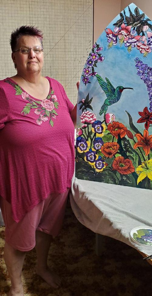 Pat said she began painting when she was young, taking art in high school. Later on, she took an oil painting class to learn the basics and was hooked. “Since then, I have done some watercolour pieces, pastels, folk art painting and now acrylics,” she explained.