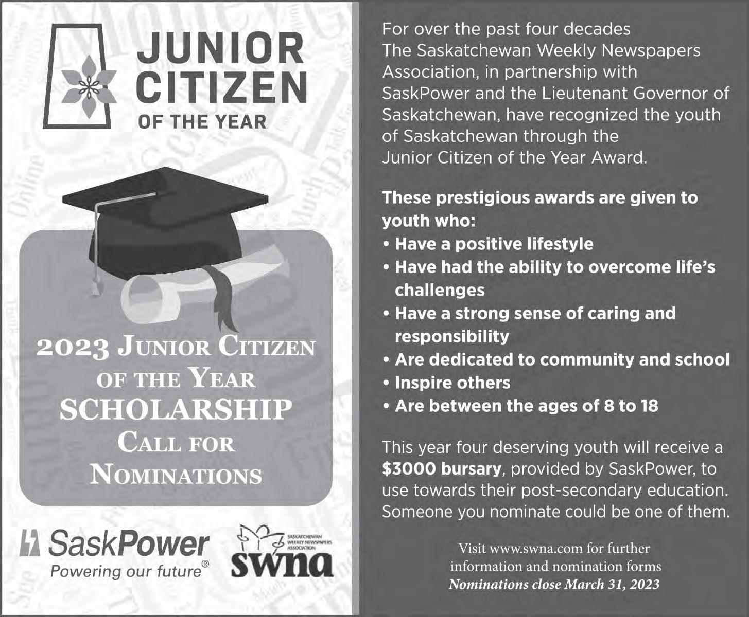 • Kindersley Wildlife Federation Annual Awards Banquet at the Elks Hall, Kindersley. Tickets $50/adult and $25/child (12 & under). Contact Brooke Kachmarski 306-460-5935.
