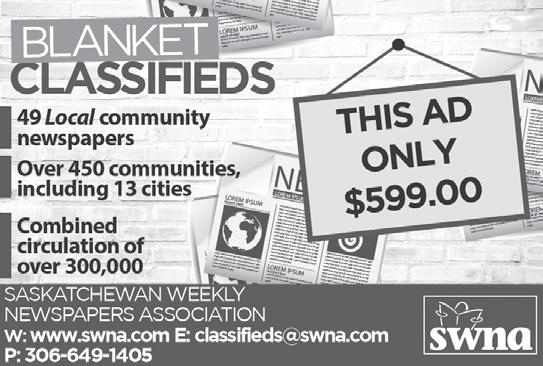 When you place a classified ad with us, it goes in all three of our community newspapers for ONE LOW PRICE! Call Kate at 306463-2211 or email: kate@yoursouthwest.com