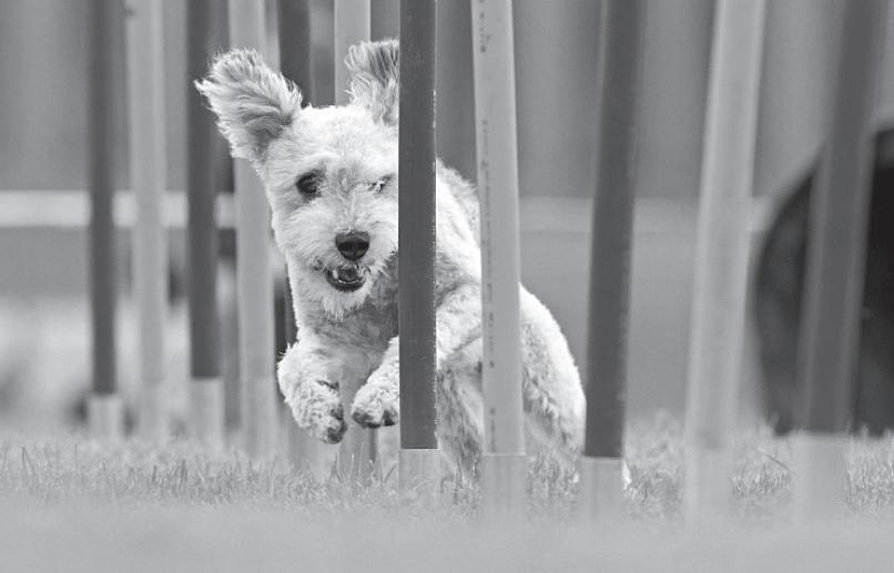 Dog agility is a sport where you direct your dog through a pre-set obstacle course within a certain time limit. Courses typically have between 14-20 obstacles, which can include tunnels, weave poles, tire jumps, seesaws, and pause tables where the dog must stop for a set amount of time. At each trial you and your dog will race around the unique courses designed for