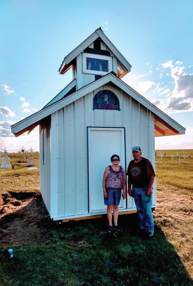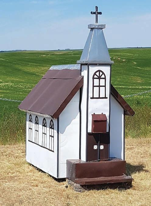 Larry Bischoff explained how the idea of a replica of the church came about. “There was a dilapidated shack out at the cemetery and the cemetery fund had some money, so we wanted to put something back. We got the idea for a replica of the original church from Liebenthal parish, and we contacted them about the replica they had built.” The replica at Liebenthal was built by Roger Drever and his son-in-law Adrian Hope from Maple Creek, and Gerald Wagner donated the funds for the construction.