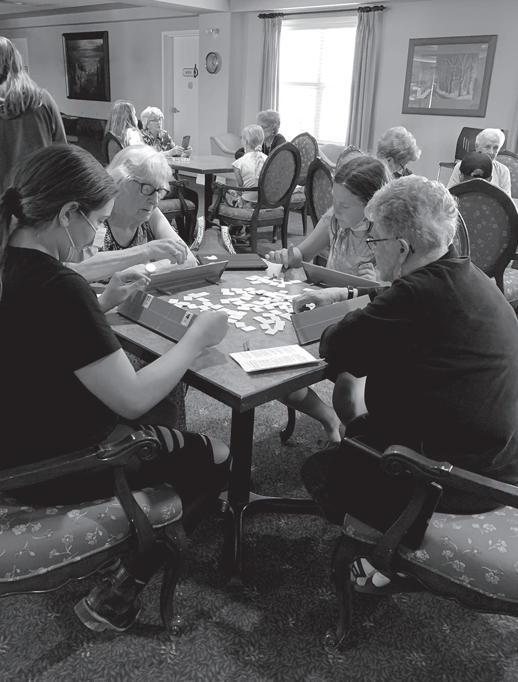 The group recognized the advantage of having a student to match up with each resident in the manor, and off they went for their first visit. Students introduced themselves to their senior partners, as well as providing the names of their family members. Many of the residents would have had family connections within the small community. Students and residents spent their time together playing card games.