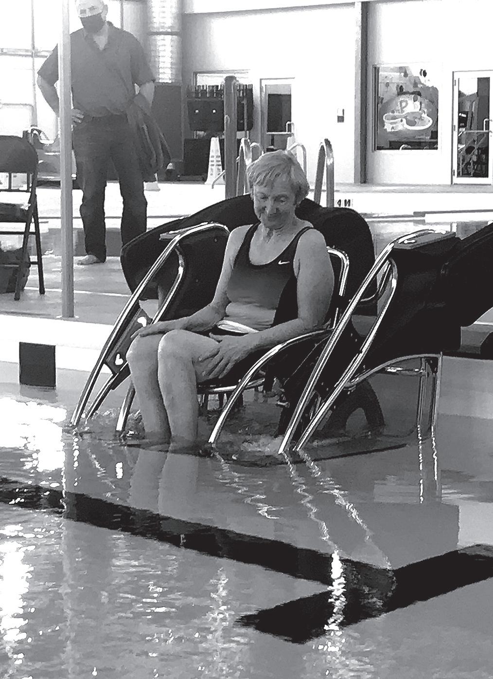 Kindersley Aquatic Centre unveiled two new wheelchair lifts with the help of staff members, several town councillors and a few guests. Sue Speir from Brock demonstrated how the lift works.