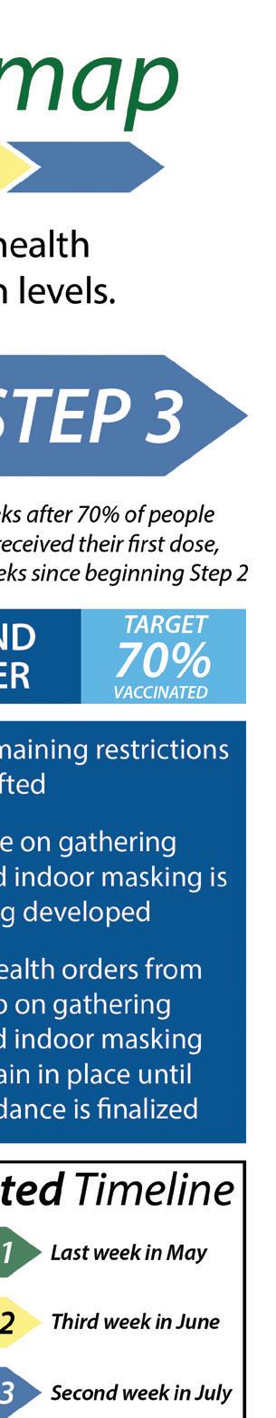 Step Three would see the end to pretty much all existing restricting (perhaps even indoor masking, although that is not existing) by mid- to late July if we