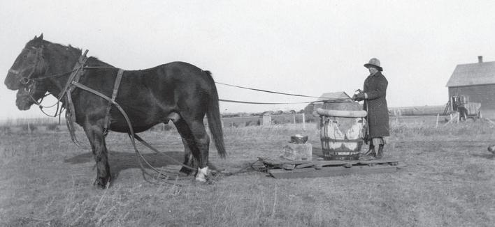 Her mom married a farmer from Eston who had a homestead. “They moved into two granaries that they had put together,” Nelda said. “There was no electricity or conveniences. Drinking water was hauled with an old truck from a spring fifteen miles away and stored in a small cistern, and water for washing was brought up in barrels from a dugout.”
