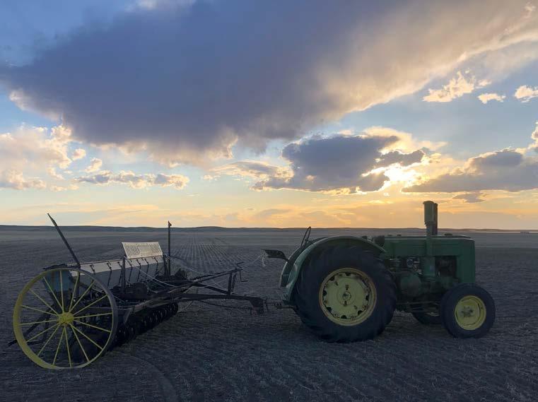 truck to fill the seeder. The tractor used for seeding didn’t have a cab. “You eat a lot of dirt,” he said, stating the obvious. “It took about four days to do my 80 acres. My son helped me the last couple of days. He’ll be the fourth generation to farm that quarter. It’s quite a big deal for a young guy to work on something antique and persevere.