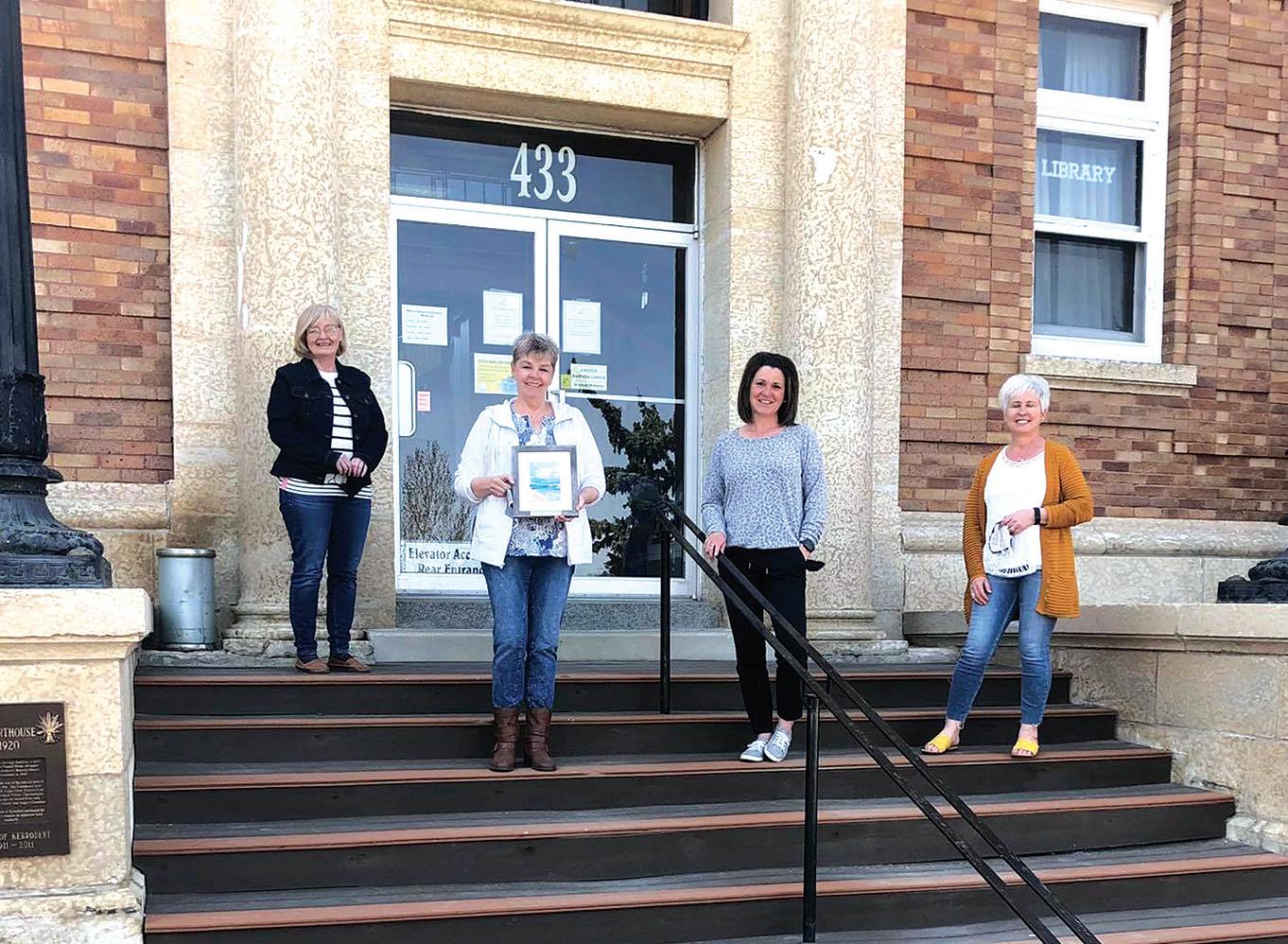 The staff and board of the Kerrobert Wheatland Regional Library has been chosen a 2021 Award Recipient from the RiversWest District for Facility of the Year. Their hard work, which began in 2019 with the Library being relocated, has resulted in increased circulation numbers, patrons and programming and a renewed interest in literacy thanks to the creation of a beautiful new and welcoming space! (L to R): Heather Wack-Wheatland Representative; Gayle Zerr - Kerrobert Board Chairperson; Gerri Walz - Programming Librarian; Nancy Charteris - Kerrobert Board Vice Chairperson. | PHOTO COURTESY TOWN OF KERROBERT CULTURE & RECREATION