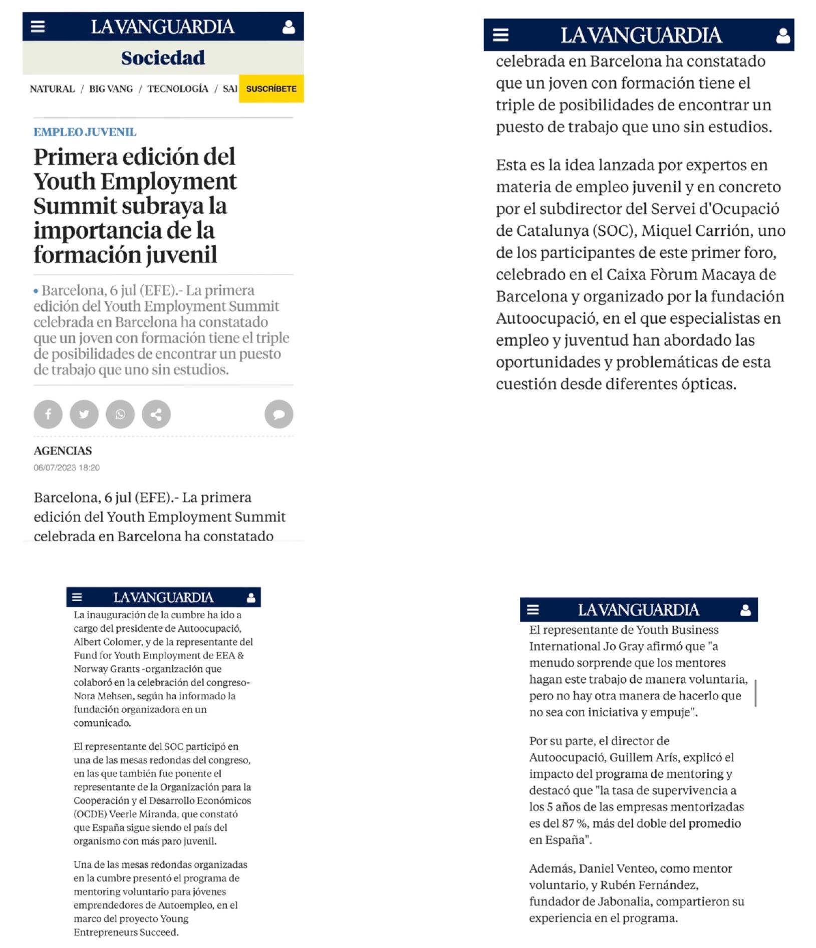 The Youth Employment Summit talked especially about the importance of young people needs in terms of orientation and guidance, and as you can see here as reported by the newspaper, a young person with training is three times more likely to find a job than one without studies!!!