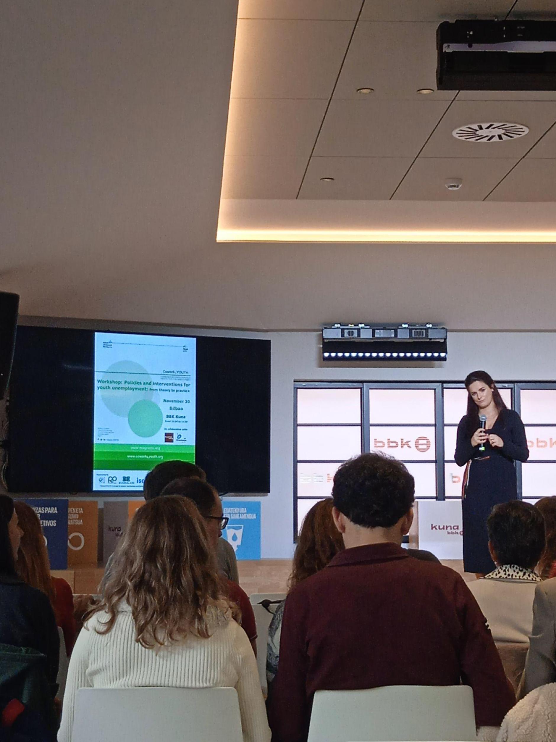 Ainhoa Osés Arranz, researcher at ISEAK, talked about the role of Cowork4YOUTH in addressing youth unemployment by conducting a “diagnosis” of the key labour indicators for the youth and their