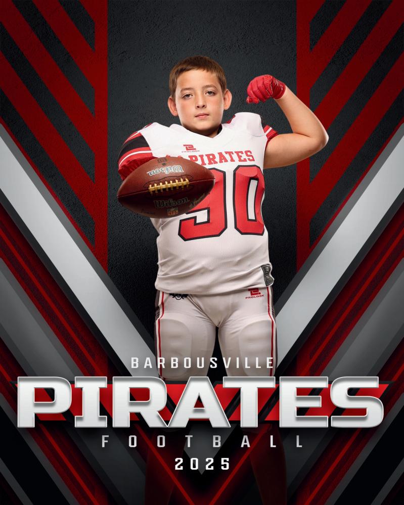 Roger “R.J.” Bell may only be in his second year of football, but he’s already making a name for himself as a hardworking and determined athlete. A proud member of the Barboursville Pirates C-Team, R.J. wears No. 12 and lines up as a JV running back, bringing energy and grit to every play.