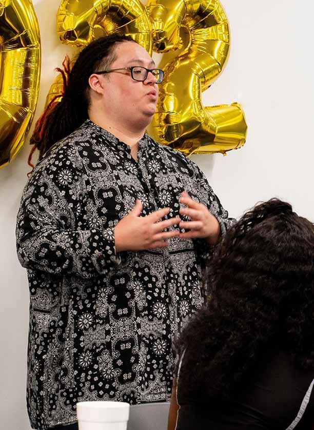 Tristan, LifeSet participant and recent Vanderbilt grad, is addressing the students at the LifeSet graduation celebration.