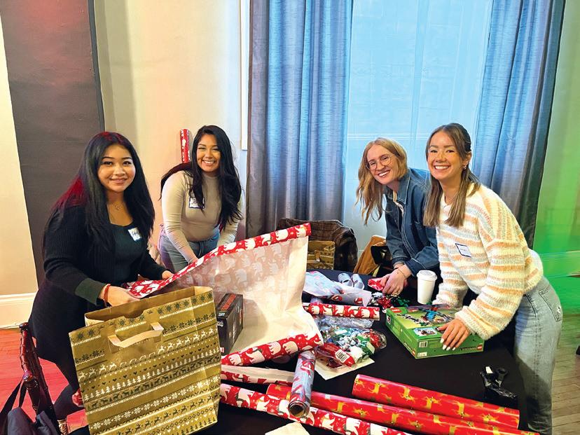 Volunteers wrapping gifts at Holiday Cheers & Volunteers.