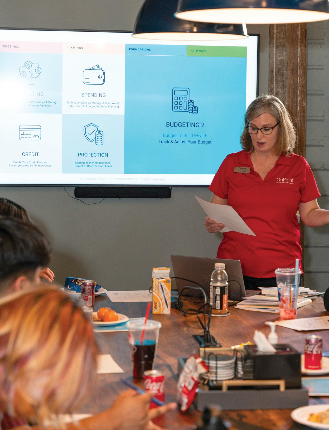 OnPoint Community Credit Union volunteer Jennifer Grant teaching a financial education class.