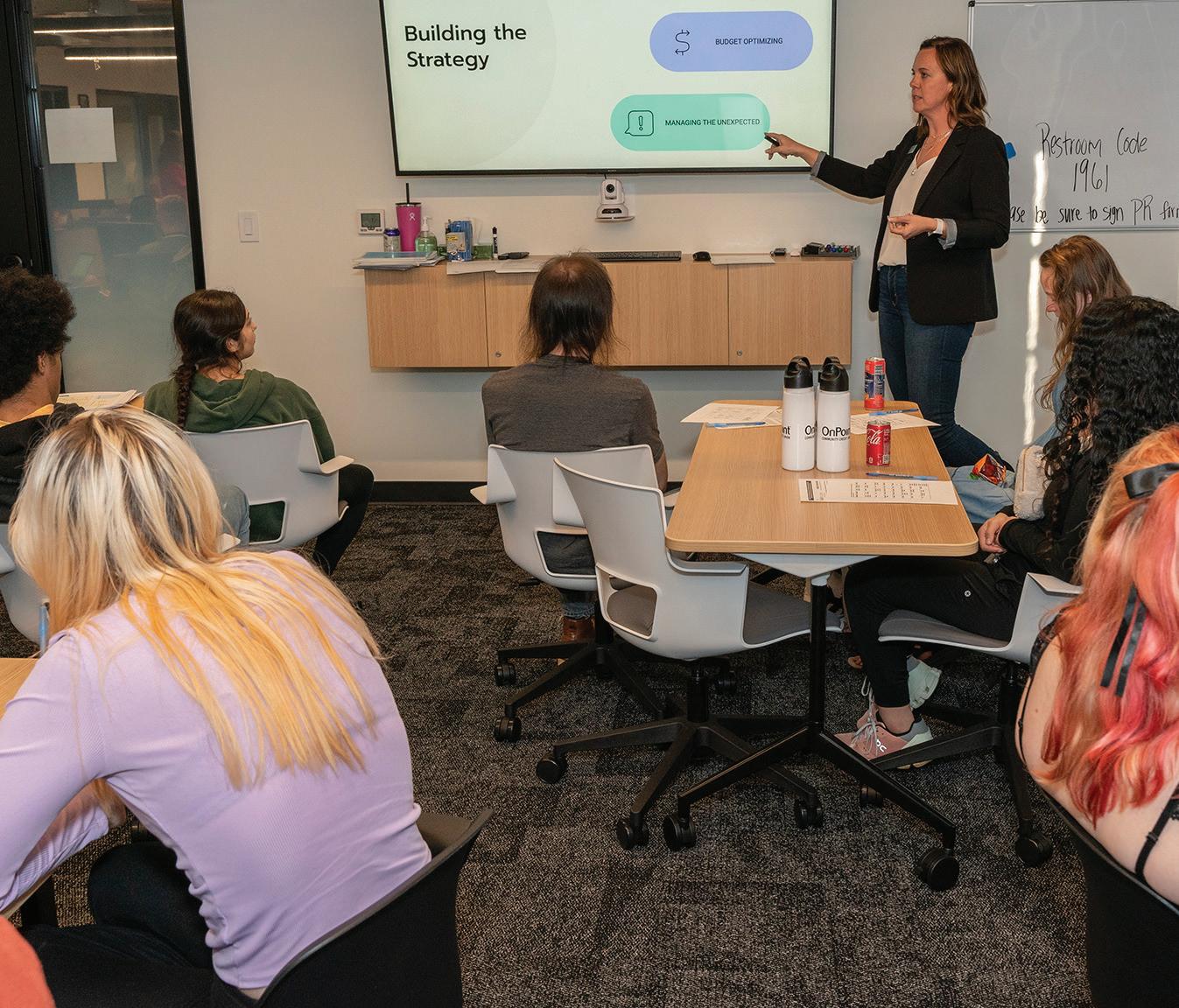 Youth Villages Oregon local board member Amber Kelly (OnPoint Community Credit Union) teaches a financial education class to foster youth.