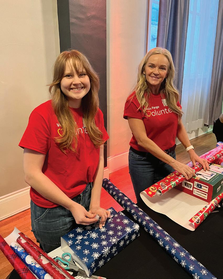 Wells Fargo volunteers wrapping gifts at the annual Holiday Cheers & Volunteers event.