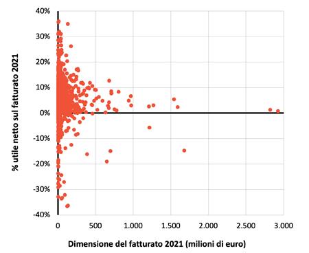 aumento eccezionale dei prezzi che, di fatto, ha gonfiato i fatturati». E proprio per analizzare questo elemento, potenzialmente critico, quest’anno nella lettura dei bilanci sono stati introdotti alcuni indicatori capaci di raccontare ancor più nel dettaglio gli effetti delle dinamiche di settore. Rispetto alle analisi sui bilanci del 2020, quest’anno questo volume si arricchisce non solo di nuovi indicatori, ma soprattutto di nuove imprese e settori. Dalle 1.948 imprese dell’analisi dello scorso anno siamo passati a 2.214 società, che sommano un fatturato complessivo di 101,7 miliardi di euro. Rispetto all’edizione precedente è un incremento del 13,7% del numero di aziende monitorate e del 33,9% del valore dei ricavi e delle vendite da prestazioni. Uno sforzo che ha portato a incrementare l’analisi aggiungendo 266 aziende per oltre 25,7 miliardi di fatturato monitorato in più. Rispetto all’edizione 2019 l’incremento è rispettivamente del 57,5% delle imprese analizzate e del 68,6% del fatturato.